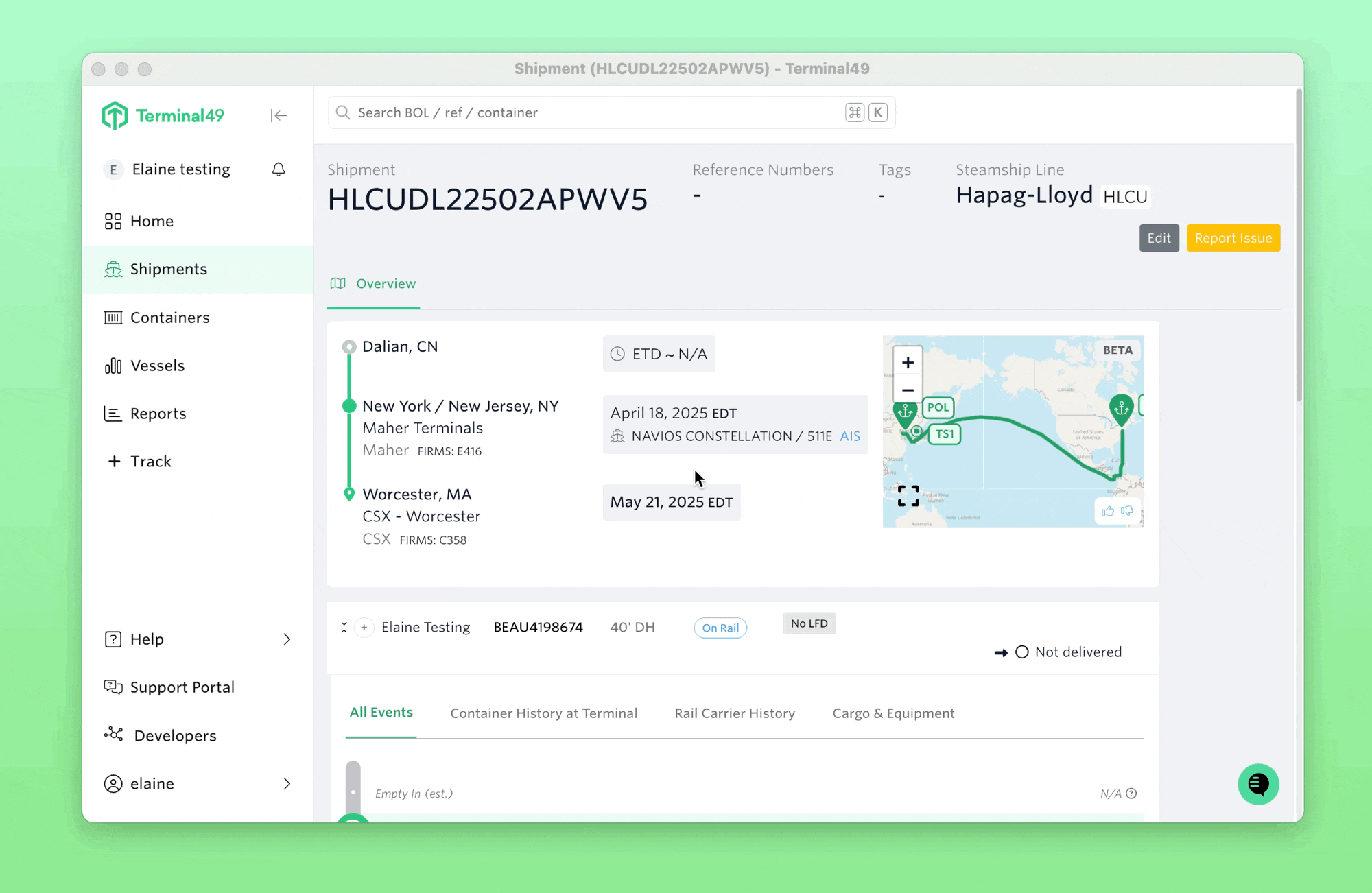 Whether you’re managing thousands of containers or tracking a single urgent shipment, Terminal49’s dashboard is now designed to help your team surface what matters, share it seamlessly, and respond without delay. From global search and customizable filters to unified timelines and live maps, these updates make it easier to make smarter decisions—faster.