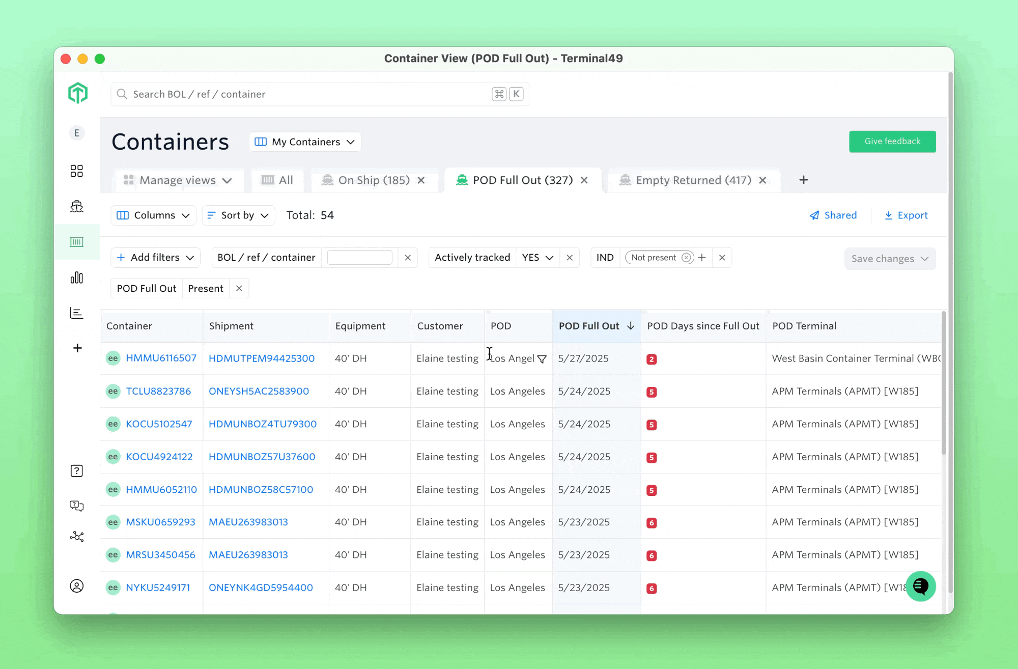 Need to loop in a drayage carrier, customs broker, or customer? Now you can create a Shared View—a live, read-only link that mirrors your dashboard filters and updates in real-time. It’s fully branded with your company’s logo and colors, so every external stakeholder sees exactly what you see—no exports or email threads required.
