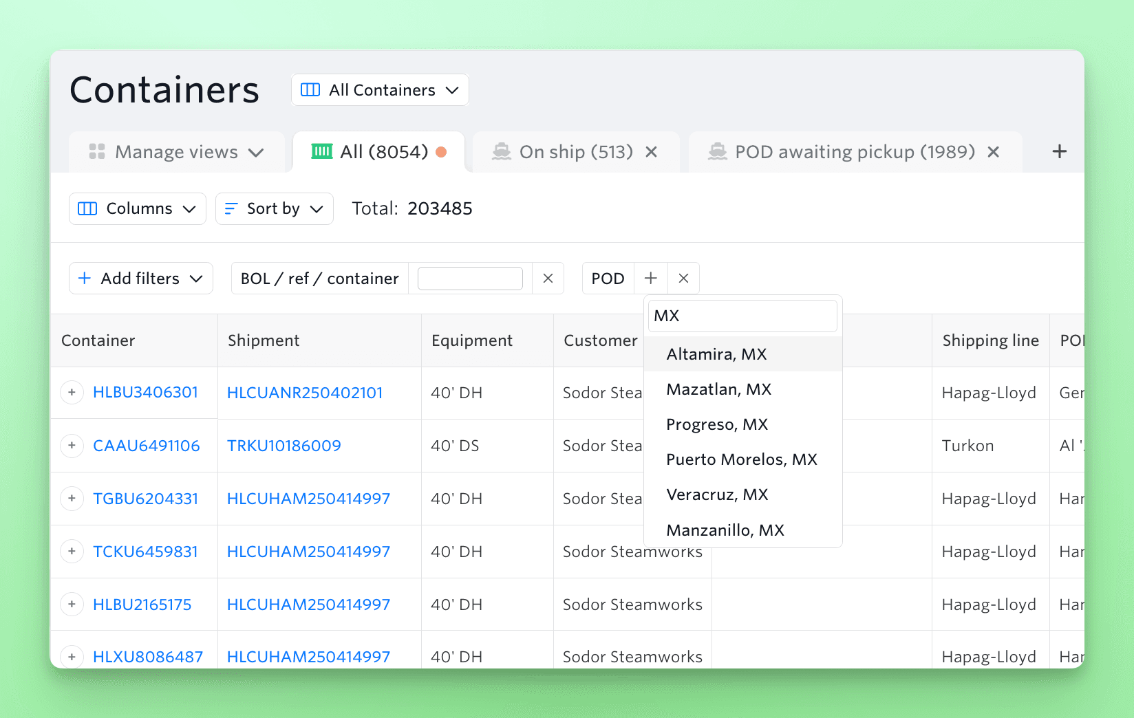 To support this growth, we've integrated with all major terminals in Mexico to provide nearly 100% visibility into container imports moving into North America. This ensures broader coverage, more reliable data, and clearer shipment tracking across key trade routes.