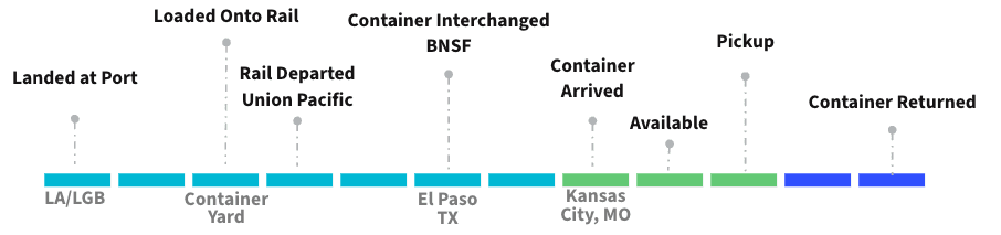 - Visibility at Every Rail Milestone: Rail Loaded, Rail departed, Rail arrived, Rail unloaded, full out at rail pickup facility, and empty return.
