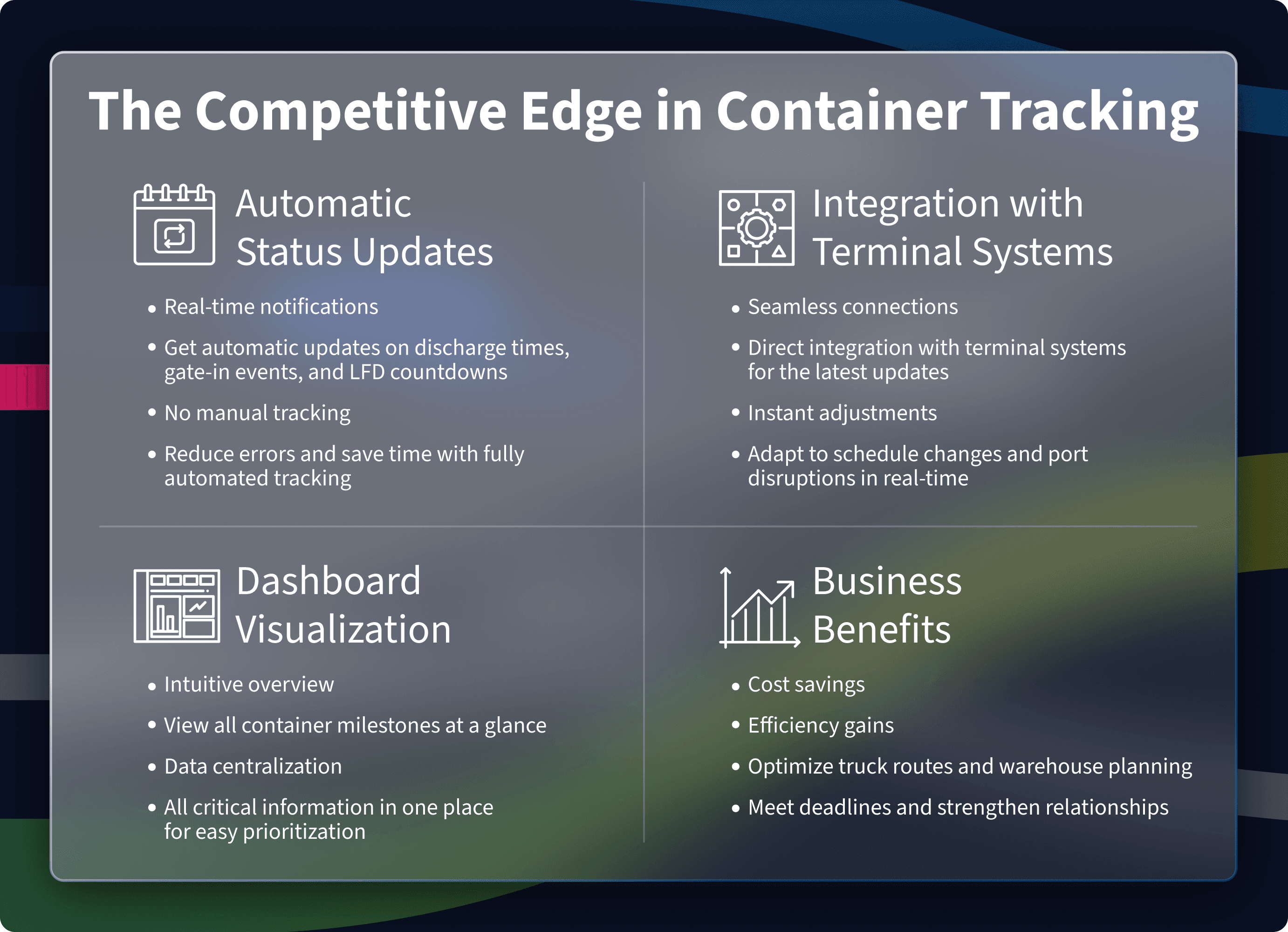Traditional container status-tracking methods rely heavily on manual updates and fragmented systems. These outdated approaches often fail to provide real-time information, leaving businesses to rely on guesswork or frequent phone calls to terminals for updates.