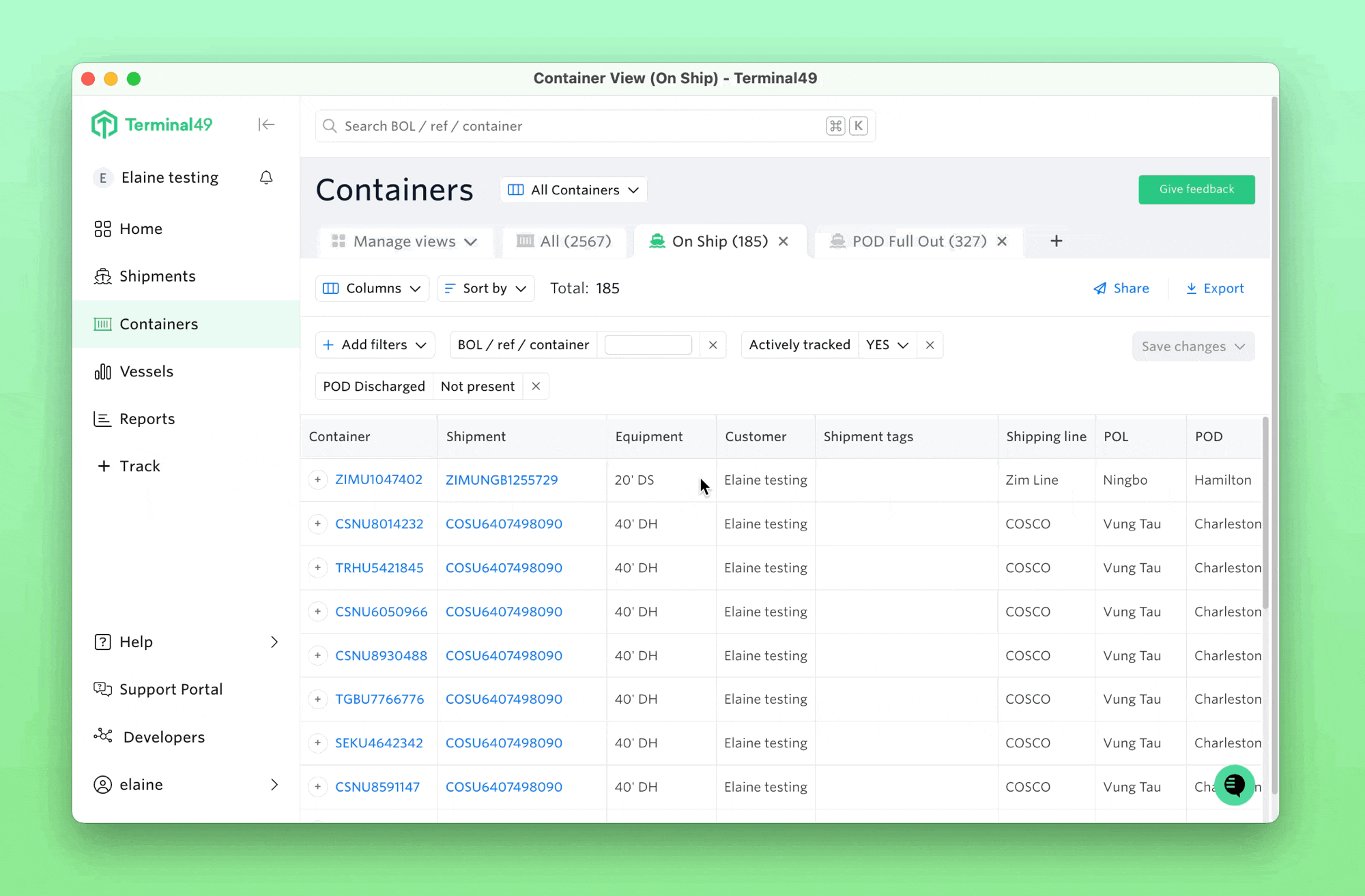 Need to loop in a drayage carrier, customs broker, or customer? Now you can create a Shared View—a live, read-only link that mirrors your dashboard filters and updates in real-time. It’s fully branded with your company’s logo and colors, so every external stakeholder sees exactly what you see—no exports or email threads required.